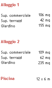 Sistemazione esterna Giardino con alberature autoctone e siepi disposte lungo il perimetro di pertinenza Piscina attrezzata e rivestita in tessere di mosaico di colore bianco e blu (ditta Marazzi), completa di impianti di depurazione, sterilizzazione ed illuminazione Illuminazione esterna a parete e pavimento lungo i percorsi