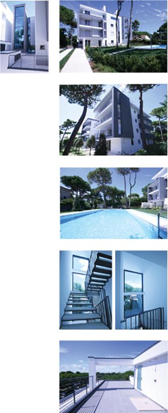 La residenza “La Perla” è una modernissima struttura situata in Via Raggio di Giove, in una tranquilla zona residenziale della pineta di Lignano, a pochi passi dal parco Hemingway. L'edificio si compone di otto appartamenti distribuiti su due corpi di fabbrica, uniti dai servizi di risalita, e di un ampio giardino con piscina. Gli alloggi si distribuiscono su quattro livelli e sono composti da un’ampia zona giorno, tre camere e doppi servizi. Lo spazio della zona giorno è reso continuo all’esterno dalle splendide terrazze esposte a sud, immerse nella pineta circostante. Queste ultime sono fondamentali sia formalmente, nel completare la composizione architettonica dell’edificio, sia funzionalmente, nell’allietare le colazioni ed il relax. Le unità al piano terra dispongono di giardino riservato mentre gli attici godono di un ampio solarium attrezzato. Ogni unità dispone di uno spazioso garage al piano interrato, raggiungibile dalla rampa collocata nella zona nord o, direttamente, attraverso scale ed ascensore interni. Ad ogni appartamento è garantita la massima privacy e autonomia. L’attento studio dei dettagli ha portato alla realizzazione di una residenza dall’architettura pulita, dall’elevata qualità dei materiali e dall’estrema cura delle finiture. |